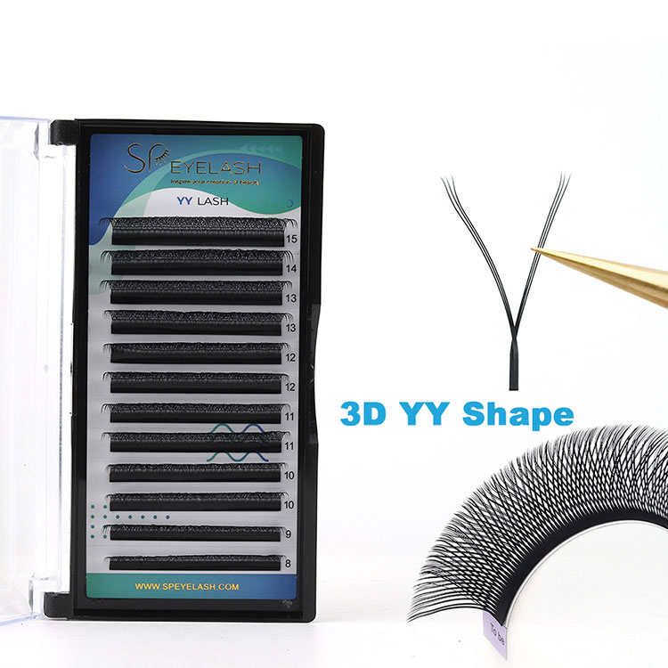 3D YY prodlužování řas má design ve tvaru Y se 6 jednotlivými prodlužovacími řasami spojenými dohromady. Tento jedinečný tvar velmi usnadňuje vytváření vějířů při uchopení pomocí pinzety se 3 hroty na každé straně. Nejsou vyžadovány žádné speciální dovednosti a můžete okamžitě dosáhnout 6D clusterového efektu.