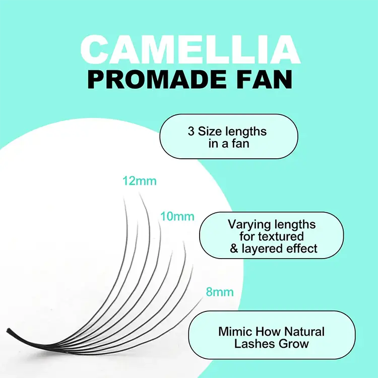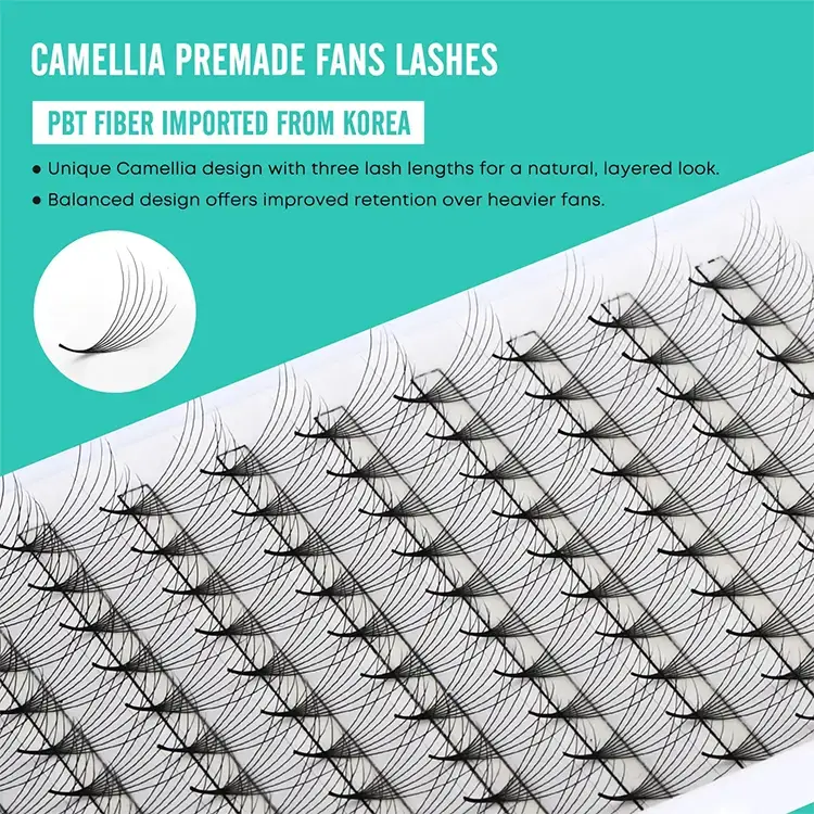 SP Eyelash 8d Camellia Premade Fan Lashes je inovativní produkt pro tvarování řas, který používá importovaná PBT vlákna z Jižní Koreje k vytvoření matné sametové textury. Má nejen jemný a měkký dotek, ale také udržuje stočený a deformovaný tvar po dlouhou dobu. Prostřednictvím zpráv o certifikaci bezpečnosti SGS a zpráv o testování materiálů MSD je produkt zaručen z hlediska trvanlivosti a bezpečnosti. Jedinečný design 8D vrstevnic umožňuje řasám představovat přirozeně kvetoucí tvar kamélie, se dvěma možnostmi ve tvaru ventilátoru: úzký a široký, daleko přesahující hustotu běžných produktů na trhu a snadno dosahuje hustého a baculatého make-upu.