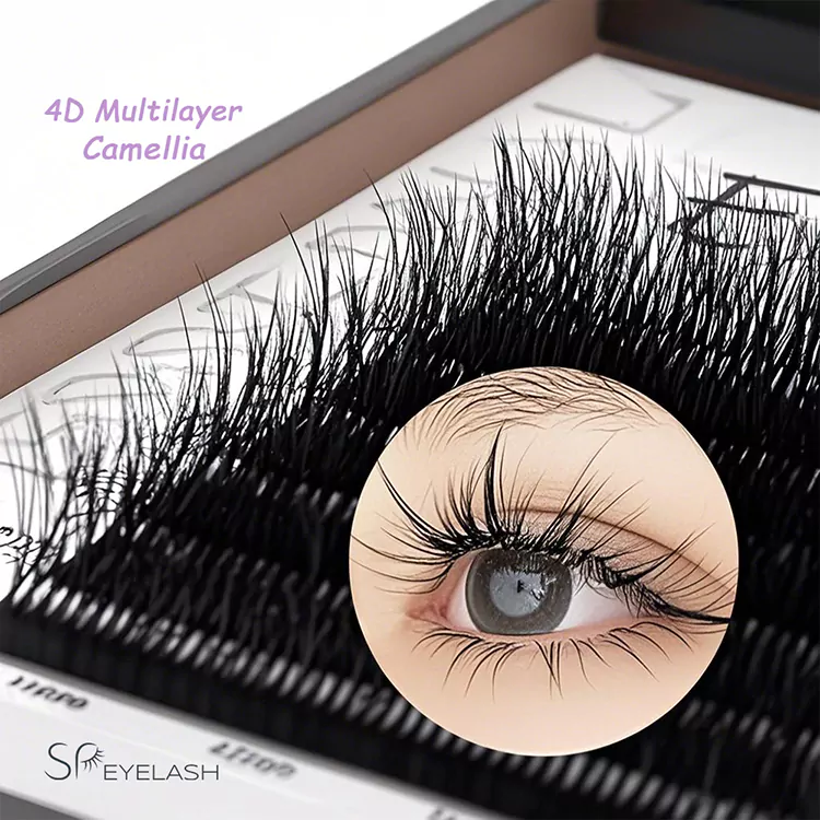 SP Eyelash Fluffy Velvet Camellia Lash vybral ultra lehký materiál PBT vlákna, přičemž hmotnost jediného klastru se snížila o 40% ve srovnání s běžnými vlákny v kombinaci s technologií manuálního mikrotoru a dosáhlo 12 hodin bezproblémového nošení. Ultra tenký stonek 0,22 mm podstoupil 3 změkčovací ošetření 3, což dokonale přizpůsobilo křivku asijského tvaru oka. Dokonce i začátečníci mohou dokončit rozvíjení ve tvaru fanoušků za 30 sekund.