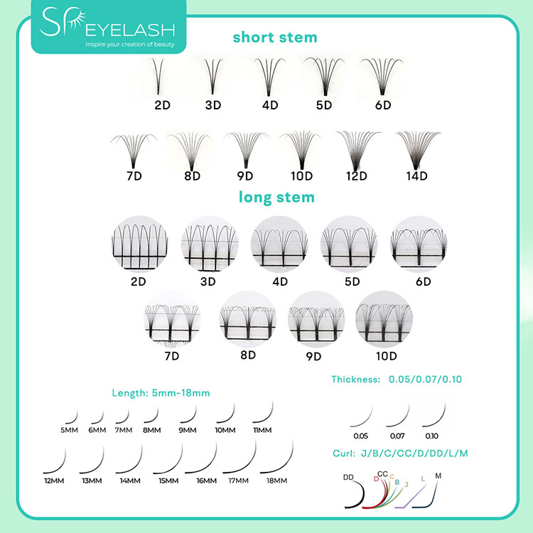 SP Eylash's Premade Fanoude 10D řasy jsou matné černé barvy, což jim dává přirozený vzhled, který se hladce mísí se skutečnými řasami. Základna předem připravených ventilátorů objemu je navržena tak, aby dokonale dodržovala a vytvořila efekt, který vypadá jako přírodní řasy. Poskytují hustý a načechraný vzhled, zvyšuje oční krásu a přitom zůstává pohodlně na nošení, s dlouhotrvajícím, stabilním kadeřem.