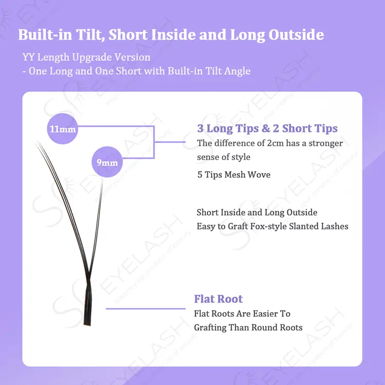 Inovativní design Fox Eye Eyelaslash Slant Slant Flying Yy Eyelash využívá 5-bodovou technologii tkaní sítě, přirozeně prodlužuje oční ocas distribucí 3 dlouhých a 2 krátkých řas. Ultra jemná vlákninová základna 0,07 mm zajišťuje nadýmání, aniž by se objevila těžká, poskytuje možnosti délky 8-15 mm spárované s C/D/J/M/L CURL, aby vyhovovala různým potřebám od holého až těžkého make-upu. Jedinečný design základny stříbrné fólie způsobuje, že odstranění chloupků je pohodlnější a odpovídající karta jasně ukazuje na parametry, což výrazně zlepšuje účinnost operací techniků řas.